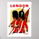 Vintage travel poster for London showing Royal Guards Trooping the Colors.
