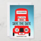 The London Bus is a widely recognized symbol of the city despite undergoing numerous design changes over the years. With this in mind, we have designed a fun yet modern interpretation of this well-loved icon, especially for a Save the Date wedding announcement. Add the names of the bride and groom and date of the wedding for a truly unique and personalized card.