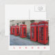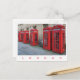 A beautiful view of some of London's iconic red phone boxes printed on a postcard.