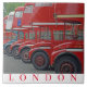 An unusual photograph of the iconic red London buses in a row printed on a souvenir ceramic tile.