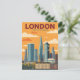 This stylish, vintage-style postcard captures the iconic and dynamic skyline of London. The retro-inspired illustration features famous landmarks like The Shard and Big Ben, set against a warm, vibrant sky. It’s the perfect way to send a piece of the United Kingdom to friends and family or to add to your own collection of travel keepsakes.