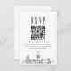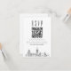A minimal wedding rsvp QR code card featuring a beautiful stylized skyline representing the city of London. Replace the QR code with one featuring a link to your website to help make responding to your wedding event easier for your future guests.