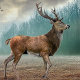 A beautiful deer running through a misty forest woodland.