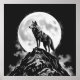 Lone Howl: Wolf and Full Moon Charcoal Art Poster