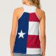 This bold and bright tank top features an image of the red, blue and white of the Texas state flag, complete with the famous lone star. The image is shown on both the front and the back.