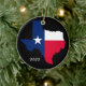 Two sided ornament featuring the Texas state outline on one and the Fort Worth cattle drive on the other. Texas is the Lone Star State, red white and blue with a white star.