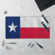 This desk mat shows an image of the Lone Star state of Texas flag, in the customary colors of blue, white, and red. Show your Texas pride!