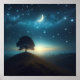 This captivating poster features a solitary tree perched atop a hill, silhouetted against a mesmerizing night sky adorned with twinkling stars and a luminous crescent moon. The serene landscape evokes a sense of tranquility and wonder, making it an ideal addition to any space seeking a touch of nature's nocturnal beauty. Printed on high-quality materials, this artwork ensures vibrant colors and lasting durability, perfect for enhancing your home or office decor.