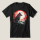 This hauntingly beautiful Lone Wolf Under Moon design captures the quiet strength of a solitary wolf set against a surreal red-tinged forest landscape. The wolf, rendered in graceful black and silver lines, sits poised and contemplative, gazing into the distance beneath a glowing full moon. Its elegant, flowing fur almost merges with the misty forest floor, blending wild instinct with calm serenity.