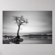 This black and white photo features a long exposure shot of a lonely tree bereft of leaves in Winter, Millarochy Bay, Loch Lomond.