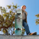 The Lonely Cedar, original expressionist painting of a beautiful landscape with a tree and the ocean in the background.