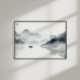 A solitary fisherman drifts peacefully across a misty lake in this minimalist ink wash wall art. The soft monochrome tones and fluid brushstrokes evoke quiet reflection and calm, making it perfect for meditation corners, Japandi interiors, or serene living spaces.