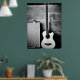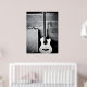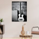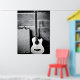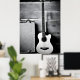A guitar abandoned by the wooden wall of the room is waiting for its musician