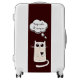 Carry on luggage with adorable cartoon of a sad kitty holding a heart with thought bubble reading "Keep calm and carry on".