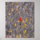 Lonely Red Cardinal in Fall Autumn Tree Art Poster