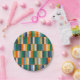 Long Blocks Retro Modern Checked Pattern Paper Plates