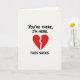 This Valentine’s Day greeting card features a bright white background with a large red heart centered on the page, split by a jagged white crack that runs straight down the middle. The heart has a rough, hand-drawn look that makes it feel honest and personal. On either side of the heart, black hand-drawn lettering reads, “You’re there, I’m here,” clearly calling out the distance between two people. Near the bottom, the message “THIS SUCKS.” appears in bold, all-caps black letters that express raw frustration and longing. The direct layout keeps the focus on missing someone and being apart, making this card a strong choice for real moments where honesty and emotion matter just as much as romance on Valentine’s Day.