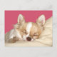 Cream or faun and white long haired Chihuahua lays his head on a pillow and snoozes into a peaceful nap photo postcard