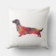 Long Haired Dachshund Geo Silhouette Multi Throw Pillow