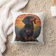 Long Haired Dachshund pet lover retro vintage Throw Pillow