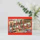Colorfully illustrated, vintage postcard greeting from Long Island, New York. It's an old postcard repurposed now on a new postcard to use for any occasion.