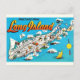 Colorfully illustrated, vintage map of Long Island, New York. It's an old postcard repurposed!