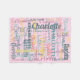 This cuddly pink baby blanket features a trendy and popular baby girl nursery colors of yellow, blue, coral, and burgundy on a light pink background with your baby's name in a typography pattern of different fonts and colors. Great gift for the baby shower and the new baby girl!