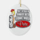 Lightweight, smooth, pure white ornament with nice sheen. Perfect size to be seen from across the room ... and to attract closer inspection! Price was great for ordering enough for the whole family! Clear, bold black design just as requested. Matches the order exactly. Just so nice!