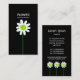 An attractive business card with a simple hand drawn flower motif. Company name and business type on the front with name and other contact details on the back with a three flower motif.