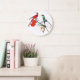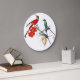 Gorgeous collage of vintage botanical fine art of exotic red and teal long tailed Hummingbird Birds and red Peony Flowers is on this Wall Clock. Images are public domain due to expired copyright. Collage is by me.