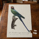 As a subject of both scientific interest and aesthetic admiration, the Long-Tailed Parakeet continues to captivate bird enthusiasts and researchers alike. Its diet primarily consists of fruits, seeds, and blossoms, and it plays a role in seed dispersal within its ecosystem. However, habitat loss and trapping have impacted wild populations, making awareness and conservation efforts increasingly important. This illustration not only celebrates the species’ beauty but also serves as a historical record of biodiversity, bridging art and science in a timeless depiction.