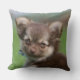 Longhaired Chihuahua Puppy Looking at Camera Throw Pillow