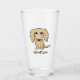Enjoy a pint of your favorite cold beverage out of this original 16 oz drinking glass. Longhaired English Cream Dachshund with custom text for your name or slogan. Makes a fun personalized gift for wiener dog lovers. Visit Jenn's Doodle World for more custom drinkware and cute Doxie themed home decor.