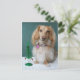 Longhaired dachshund sitting on a wicker table postcard