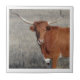 Longhorn Cow Licking Her Nose Ceramic Tile