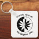 Look At The Brighter Side Inspirational Quote keychain. Black and white flower inside a black and white circle geometric pattern with an inspirational quote ''Always look at the Brighter side.'' Fully Customizable. Personalize with your own text or quote.
