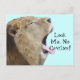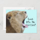 Original photo of a male lion with his mouth wide open, and his tongue sticking way out and "Look Ma, No Cavities!" in loud bold font blasting right next to his open mouth showing his big teeth. Light blue background can easily be changed to any color. Just click on customize and then click on color to change it. A perfect and funny postcard for dentist offices for dental appointment reminders.