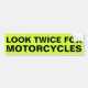 Raise awareness, promote motorcycle safety, and remind drivers to look twice for motorcycles with this "Look Twice For Motorcycles" bumper sticker!