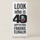 Personalize this simple black and white look who is 40, 40th birthday party banner with your own birthday name and a photograph in the 0 of 40. Simple bold text and personalized photo design. Ideal for using at a fortieth birthday party to show a photo of your birthday boy or girl. Other matching items are available. © Original graphic design by www.mylittleeden.com