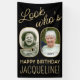 Look who's 90! Celebrate a happy 90th birthday for him or her with a custom 2 photo vertical banner. Pictures and wording on this template are simple to personalize. (IMAGE PLACEMENT TIP: An easy way to position a photo exactly how you want is to crop it before uploading to the Zazzle website. If you need additional help, please message me :) The black and gold design features two pictures of your choice, elegant modern script calligraphy, and classic vintage art deco typography. Please note that gold is printed color, not metallic foil. This special ninetieth birthday sign adds a customized finishing touch to party decorations and is a stylish way to welcome guests to the celebration. The gender neutral design is suitable for either a man or a woman. Happy Nintieth birthday!