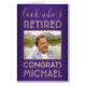 Look who's retired! Go big with your congratulations and best wishes for the retiree with an extra large photo retirement card. The picture and all wording on this template are simple to personalize and colors and fonts are easy to change with the Zazzle design tool. Create your own unique keepsake gift that has a giant space inside for coworkers, friends and family to sign and write messages. The purple and gold design features a faux foil interior, stylish modern typography, and handwritten script calligraphy. Please note that gold is printed color, not metallic foil. A jumbo oversized folded greeting card also makes a stylish and funny retirement party decoration idea or sign and is suitable for either a man or a woman. Happy Retirement!