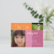 "look who's turning three" pink & green birthday party invitation. Personalize this stylish postcard template with your child's photo and party details for a one-of-a-kind birthday invitation!