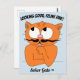 "LOOKING GOOD, FELINE FINE!" Cute Mustache Cat Postcard. This postcard bears the image of cartoon mustache cat Señor Gato in a thoughtful pose with the words "LOOKING GOOD, FELINE FINE above! Background color is blue.