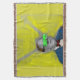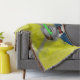 A quality printed throw has its advantages. This is a much finer weave throw than its loopier cousins, and though lighter, it is worth the investment for custom room accessorizing. The back is much prettier than the typical brown, and the fringe on the long sides very vivid, the selvage nicely done. Before photographing, I washed the throw in cold water, delicate, with a thicker woven throw the same size. On tumble dry low, this throw was dry in half the time as the other. This is a very practical quality if you use throws for furniture covers or to wrap up in frequently. The sleekness of the fabric makes it a great layer for accenting or protecting without the feeling of sitting on too much stuff. Perfect for napping or when you feel a light chill coming on. The color printing is beautiful and on this fabric, matched the design and color of my Photoshop image. This is an advantage for blending room fabrics and colors. The fringe on the short sides prints the colors from the design image and therefore varies from the side fringe. I streaked a white fractal line through the plaid pattern to give the illusion of weaving. This printed as crisp as an illusory thread, and put some white in the short side fringe, showing another advantage of print vs loomed- for artistic purposes, line lines, detail, and color integrity can be planned and preserved. My loomed throws have color limitations and more of a needlepoint texture. Print throws reproduce an exact image. The throw felt a little stiff straight out of the package, but this went away in the first delicate wash. Of course I searched the wash water for ink or bleeding and there was none.