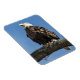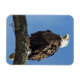 A bald eagle on a tree branch gazing skyward as if in thought. The image is enhanced by the bright blue sky.