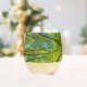 Looking up through green tree leaves stemless wine glass