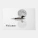 Loon Swims In The Moonlight, Welcome Door Mat. Digital Art. Common loon swims in the reflection of a full moon. Change the wording, the font, or remove it completely.