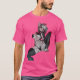 My 11 yo wore adult XL (5’7” 165#). The 8yo is small framed. She wore adult small and tied it in the back. Grandma wore adult large with long sleeve shirt underneath. Tall girl adult medium. Dark haired male adult large. Good quality dark Heather gray, Gildan brand shirt. -it was next up from basic choice and cost about $20 per shirt. Not too thick or thin. Washed and dried well, no major shrinkage. Not see-through. Can wear a bra under it fine. Screen print is just as shown and well done, front and back.