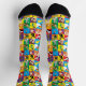This fun Halloween socks are bright and colorful. The small print is crisp and shows the fun details. The softness of the socks feels nice on my feet and ankles. .