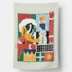 This vibrant holiday graphic features Daffy Duck in his signature exuberant style, enveloped in festive cheer. Daffy peeks out from behind a snowy scene, next to a playful "QUACKERS! QUACKERS! QUACKERS!" text that embodies his zany personality. The design cleverly integrates Christmas elements, including a snowman, a gingerbread man atop a stocking, and colorful holiday patterns that frame Daffy in a patchwork of seasonal joy. The mix of bold colors and geometric shapes captures the whimsical and chaotic essence of Daffy Duck, making this graphic a perfect holiday treat for Looney Tunes fans and those who enjoy a touch of classic cartoon nostalgia during the festive season.